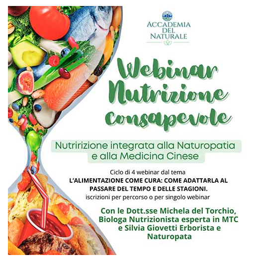 Un ciclo di 4 serate, tutte indipendenti tra di loro, per parlare di alimentazione, fitoterapia, medicina cinese, naturopatia e come integrare il tutto al fine di trovare il proprio equilibrio e stare bene nei diversi periodi della nostra vita, periodi che sono sempre in movimento.